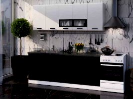 С помощью черного и белого цвета есть возможность создать неповторимый и яркий интерьер. Такая цветовая гамма отличается сдержанностью и благородством. Воздушный белый верх и основательный черный низ зрительно разделяют кухню на разные зоны. Современная кухня "Рио" черная - это комфорт, надежность и гарантия.