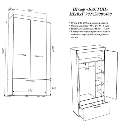Шкаф Бастон (Эра) продается в интернет-магазине mebelin-solnechnogorsk.ru по цене 12 434 руб. Есть доставка по Солнечногорску и Московской области. Возможность подъема на этаж и сборки уточняйте у менеджера по телефону 8(800)505-27-11.